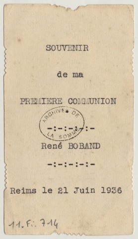 Le fichier peut être téléchargé gratuitement. La réutilisation est gratuite à condition de donner un exemplaire du produit réalisé aux Archives départementales de la Somme et de mentionner la source sous cette forme : Archives départementales de la Somme, 11 Fi 714