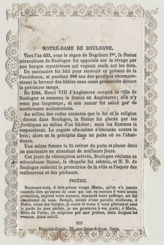 Cette collection a été constituée par les Archives départementales à partir de 1953. Entre 2023 et 2025, ces illustrations pieuses ont été numérisées et indexées par Stéphanie Rannou, sous le contrôle de Ludovic Klawinski, avec l'aide précieuse de l'archiviste diocésain, Aurélien André.