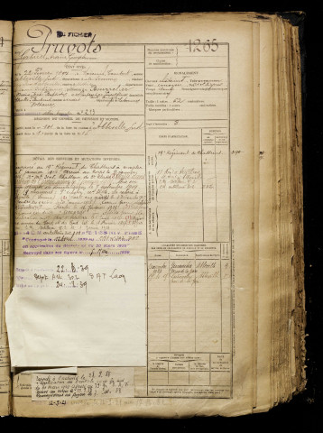 Pruvots, Gabriel Arsène Georges, né le 22 février 1897 à Mareuil-Caubert (Somme), classe 1917, matricule n° 1265, Bureau de recrutement d'Abbeville