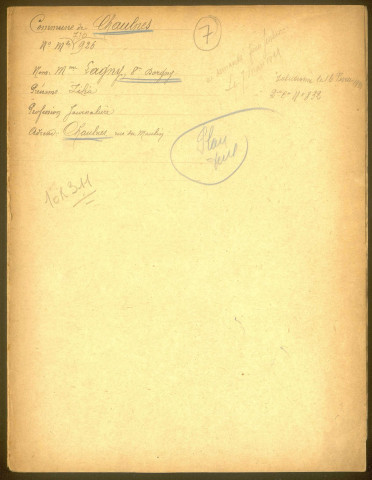 Chaulnes. Demande d'indemnisation des dommages de guerre : dossier Dorgny-Lagny