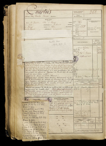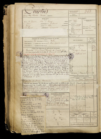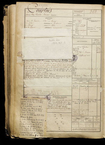 Courtois, Léon Charles Donice, né le 13 janvier 1893 à Misery (Somme), classe 1913, matricule n° 368, Bureau de recrutement de Péronne