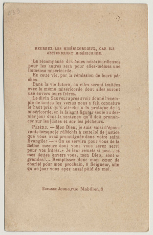 Cette collection a été constituée par les Archives départementales à partir de 1953. Entre 2023 et 2025, ces illustrations pieuses ont été numérisées et indexées par Stéphanie Rannou, sous le contrôle de Ludovic Klawinski, avec l'aide précieuse de l'archiviste diocésain, Aurélien André.