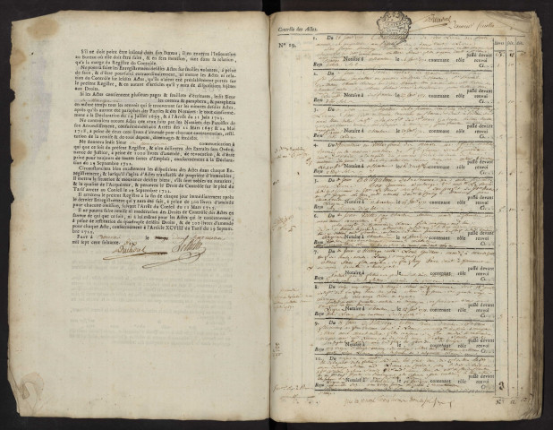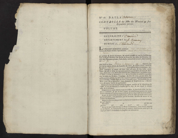 L'administration du contrôle des actes est mise en place par un édit de 1693. Celui-ci astreint tous les actes de notaires à être contrôlés et enregistrés dans la quinzaine moyennant un droit tarifé.