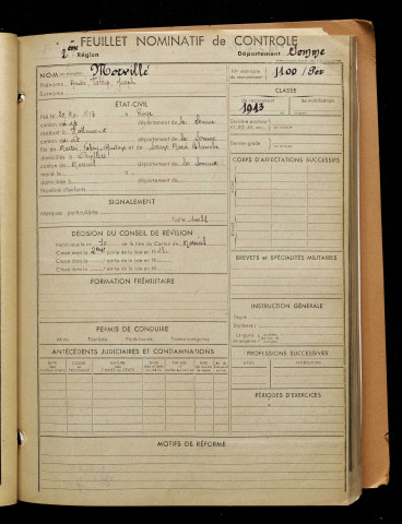Registres matricules du contingent militaire - Classe 1913 (1R)