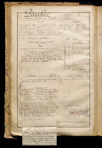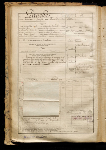 Pauchet, Gustave Joseph Hyppolite, né le 04 décembre 1876 à Grouches-Luchuel (Somme), classe 1896, matricule n° 62, Bureau de recrutement d'Abbeville