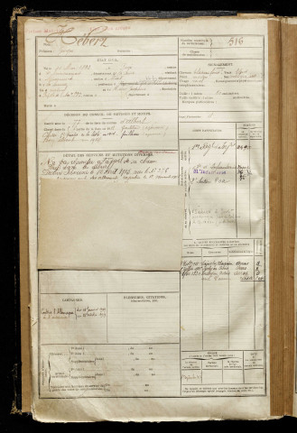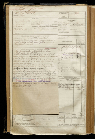 Hébert, Georges, né le 11 mars 1893 à Paris 4e Arrondissement (Paris), classe 1913, matricule n° 516, Bureau de recrutement de Péronne