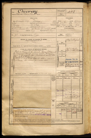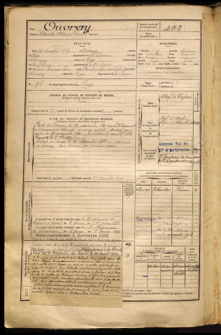 Ouvray, Charles Alphonse Thimoléon, né le 19 décembre 1869 à Crémery (Somme), classe 1889, matricule n° 452, Bureau de recrutement de Péronne